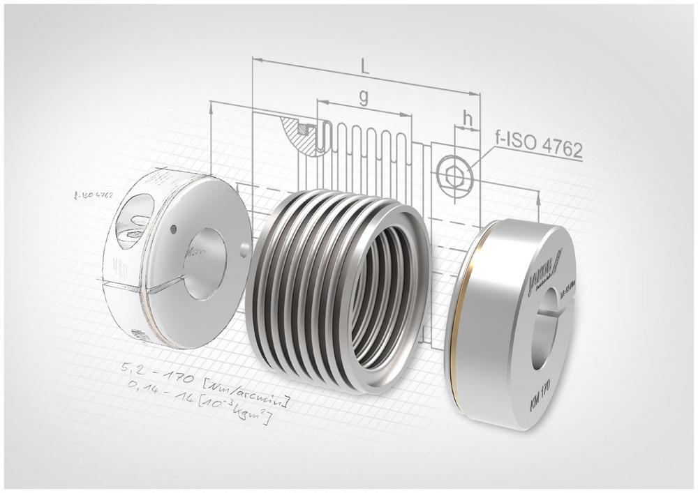 KM series metal bellows couplings are available with nominal torques from 0.4 to 1300Nm.