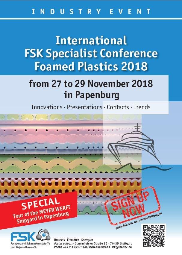 The Specialist Association Foamed Plastics and Polyurethanes (FSK) will be holding its annual International FSK Specialist Conference Foamed Plastics from 27 to 29 November. The 2018 venue for the FSK Specialist Conference will be the Forum Alte Werft in Papenburg and will offer participants everything they need to know about foamed plastics. The two-day conference agenda includes lectures from numerous companies and institutions in the field of foamed plastics and of course, the traditional FSK evening event. Among other things, new solutions with technical foams and composites in various fields of application, flame protection in PUR and innovations in lightweight construction will be presented. Further topics will include effective vibration isolation with IMO-certified PUR elastomers and the introduction of technologies for using high-pressure water jets as universal cutting media. "It is very important that, with this international conference, the specialist association offers the industry a platform where topics in the field of foamed plastics are addressed in a variety of ways and from different perspectives. There should also be enough time for questions and discussions," said Klaus Junginger, Managing Director of the FSK. To provide the participants with the opportunity for intense discussions and networking, the association itself has organised an interesting supporting programme, which will begin with an evening Get-Together at the Fischhaus Smutje in Papenburg and extend to an evening event at the Alter Güterbahnhof. A special highlight this year will be the tour of the MEYER WERFT shipyard. The presentation of the FSK Innovation Award Foamed Plastics 2018, for which submissions are currently being accepted, will also take place in a festive setting. "With the wide variety of topics, the participants can look forward to extremely interesting and future-oriented impulses from the professional world," promises Klaus Junginger.