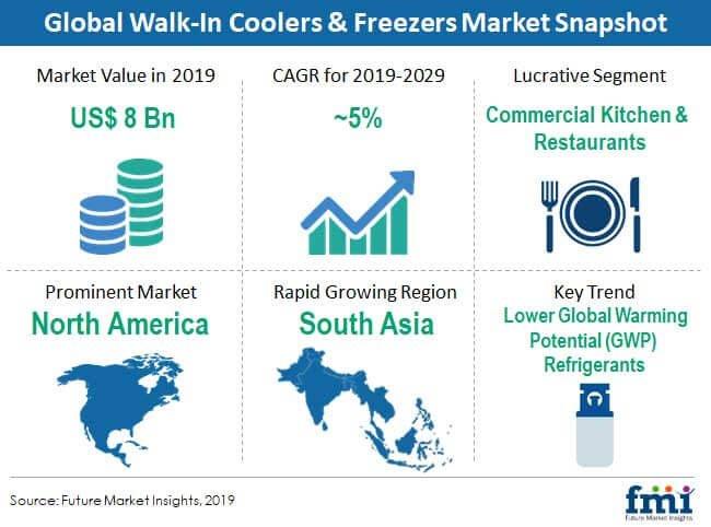 Future Market Insights (FMI), in its new report, estimates worldwide sales of walk-in coolers and freezers at  US $ 8.6 billion in 2019 . Widespread consumer acceptance of frozen and processed food, along with a steep rise in the demand for efficient refrigeration facilities to store and maintain the shelf life of these products, allude to a brighter future for the  walk-in coolers and freezers market .