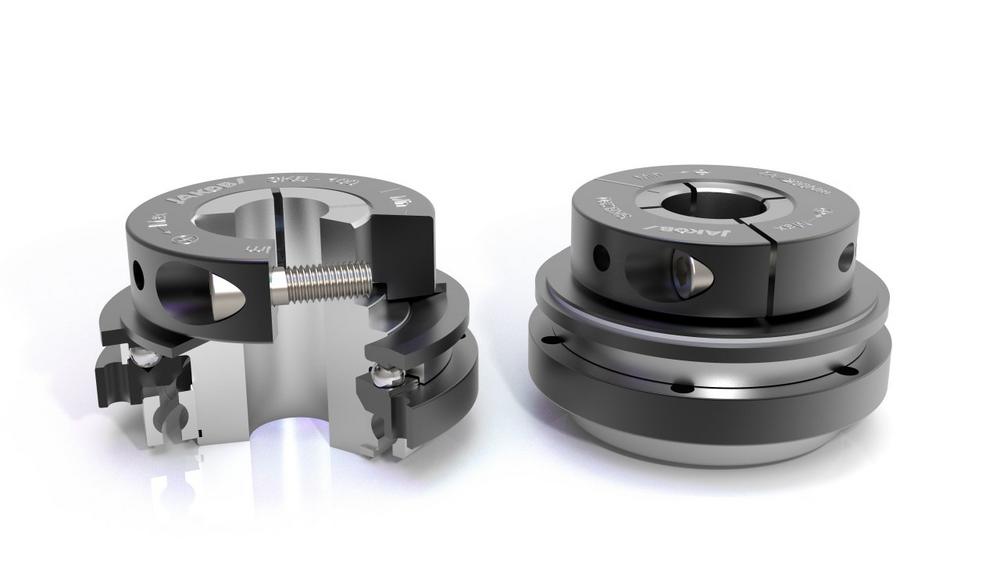 Very high release torques can be achieved by using high-strength tempered steel with surface layer hardening or plasma coating of the functional surfaces. The particularly robust ball cage is of great importance in the case of "release impacts" at high speeds, the grease-lubricated release mechanism is additionally protected against heavy soiling or washing out by a labyrinth seal. Furthermore, the SKB series is equipped with clamping ring hubs, which allow significantly larger bore and shaft diameters than conical hubs.