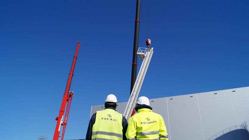 With the installation of the 24-meter-high storage and retrieval systems months of preparatory work of planning, design and manufacturing were put to a pioneering examination. Even though the machines and systems are large and massive: In the end here, too, it comes down to just a few millimetres. Whether it’s lifting the long side panels and the lifting platform through the roof opening or aligning the carrier beam with the travel rail and the guides. Despite the large masses involved, an enormous degree of precision is required at every point.