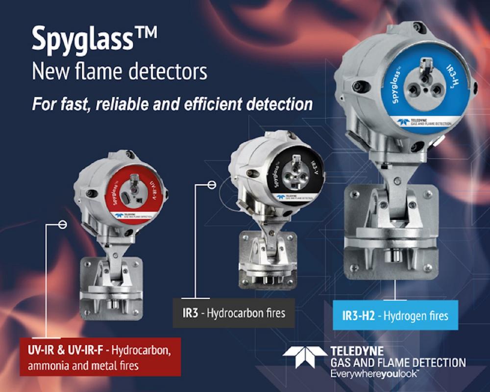 Carrying a wide range of global approvals that include ATEX, FMus, FMc, IECEx, EACX and SIL2, all SpyglassTM flame detectors work by analysing the absorption of radiation caused by gases in the atmosphere and comparing it to background atmospheric absorption. They come with triple infrared (IR3) and UV-IR options to suit a range of applications. The IR3 version is specifically designed to detect hydrocarbons, making it ideal for applications such as refineries, oil and gas platforms, FPSO (floating production storage and offloading) systems, petrochemical plants, marine facilities, compressor stations and turbine enclosures. There is also an IR3-H2 option for hydrogen and energy transition applications.