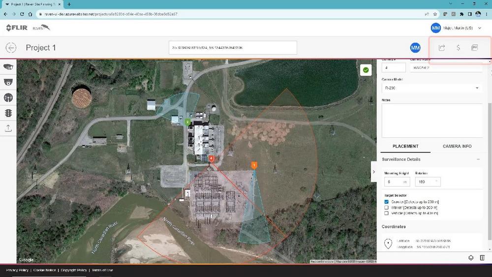 Using the latest satellite imagery via Google Maps, Raven empowers users to place any number of FLIR cameras, including the latest releases such as the FLIR FC Series AI and the FLIR FH Series ID multispectral fixed cameras, in highly accurate, coordinate-controlled locations anywhere on Earth.