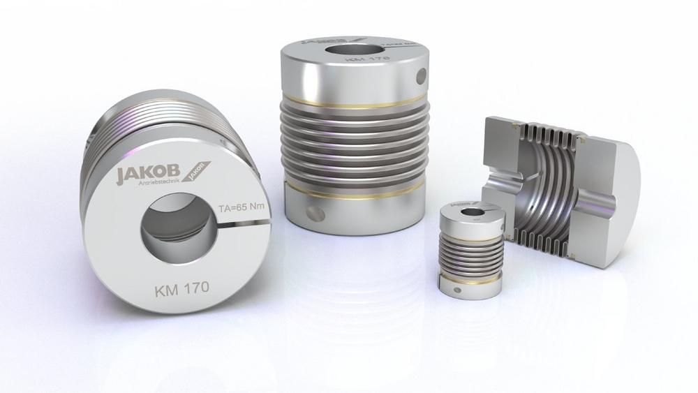 Metal bellows couplings of the KM series are available with nominal torques ranging from 0.4 Nm (MKM) to 1300 Nm (KM).