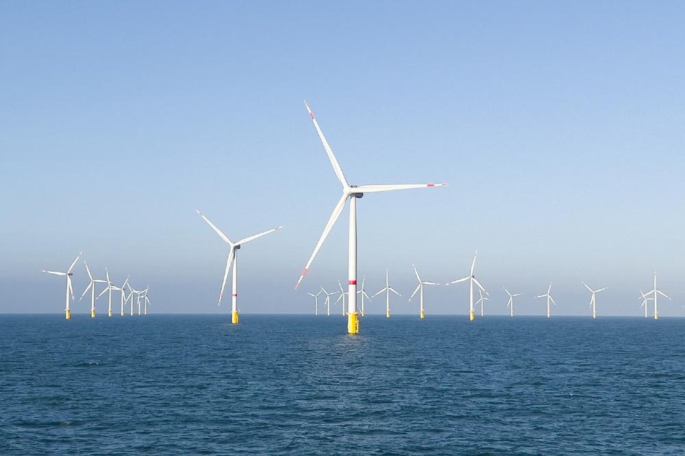 - Energy is generated at RWE’s Kaskasi offshore wind farm in the North Sea