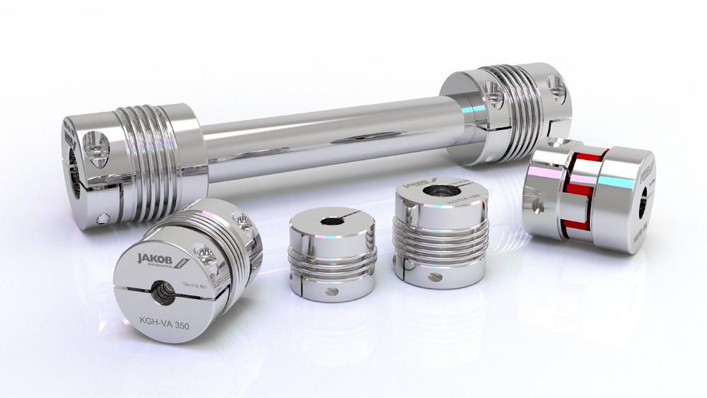 The KG-VA series can be used at temperatures up to 350 °C and is designed for shaft diameters of 10 to 90 mm and torques of 30 to 1000 Nm. The KGH-VA series is wear-free and maintenance-free, can also be used up to 350 °C and covers shaft diameters of 7 to 85 mm and torques of 10 to 1200 Nm. It is available in variable lengths with 2- or 4-wave bellows.