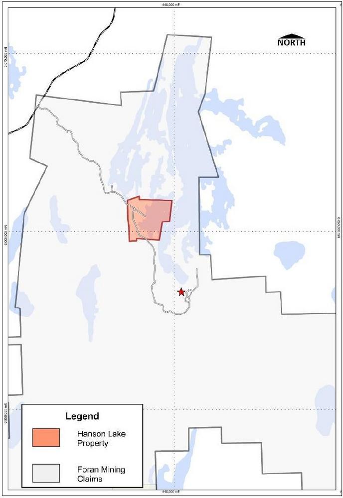 Under the terms of the agreement, Foran will make an initial payment of C$1.0M in common shares to Voyageur, subject to final approval by the Toronto Stock Exchange (“TSX”). Foran will then have five years to explore the Hanson Lake Property, with no minimum spending requirement, and hold the option to acquire 100% of the Property for a one-time payment of C$10.0M, in cash or common shares at Foran’s election, during this period.