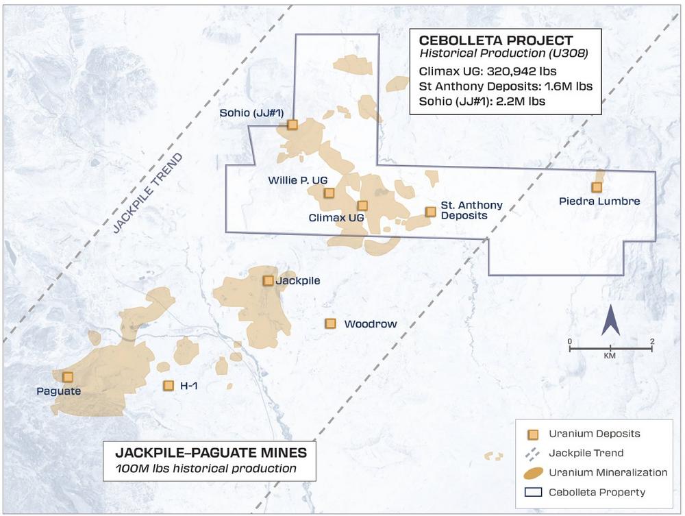 The Project has been a cornerstone of PUR’s portfolio since its acquisition in 2024. Uranium mineralization at the Project is the northern continuation of the prolific Jackpile-Paguate mineral system, which is the site of one of the largest sandstone-hosted uranium deposits in the world [2], [3], as documented by geologists of the New Mexico Bureau of Geology and Mineral Resources and the US Department of Energy.1 The northern continuation of the Jackpile-Paguate trend of uranium deposits onto the Cebolleta property is well established, but the extent of mineralization has not been fully defined, representing several important potential exploration and growth opportunities for the Company.