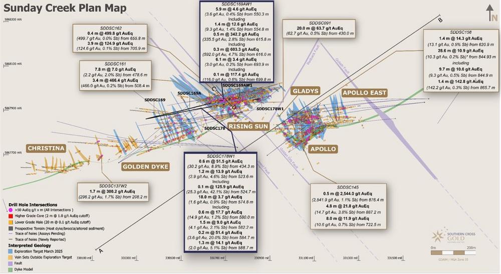 "This announcement at Rising Sun, along with previous announcements over the last 2 months at Apollo East, Golden Dyke and Christina, demonstrates significant progress with resource drilling and confidence in the continuity of mineralization, as well as extending the Exploration Target. With 70 drill intersections now exceeding 100 gram-metre AuEq across the project, and our successful use of wedge technology enabling precise targeting of these vein sets, Rising Sun, as one of five bodies across Sunday Creek, continues to deliver on scale, grade, and continuity. This is exceptional by any global standard."