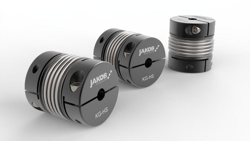 With the KG-HS coupling series, JAKOB Antriebstechnik offers a high-speed version of the popular KG metal bellows coupling. It is manufactured with clamping hubs in a splitted hub design on both sides. Assembly and disassembly are no longer difficult, even in cramped installation conditions. The rotationally symmetrical clamping hub ensures optimum balancing quality, the secure connection between the bellows and the hub is guaranteed with the micro-plasma welding process. The new series offers nominal torques of 5-1000 Nm at a temperature range of -40°C to 350°C.