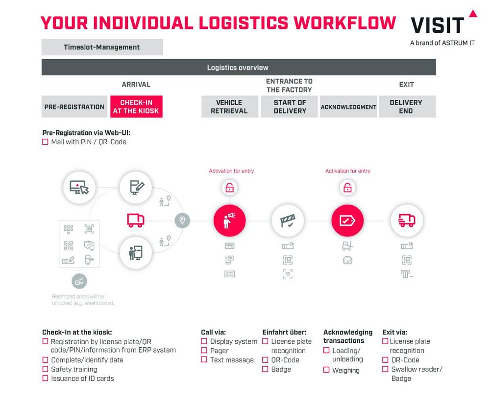 The result: better capacity utilization, less queuing, shorter handling times, and significantly higher throughput. At the same time, on-site registration time is reduced because information has already been recorded in advance – for significantly better planning on all sides.