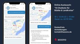 Am 22. AUgust um 14 Uhr haben wir einen Online-Austausch zum Thema “Nutzen von KI-Chatbots für Stadtwerke und Energieversorger” geplant. In dem Zoom-Meeting erklären wir kompakt und zeigen, wie Sie als Stadtwerk oder Versorgungsunternehmen gleich in mehreren Bereichen vom assono […]